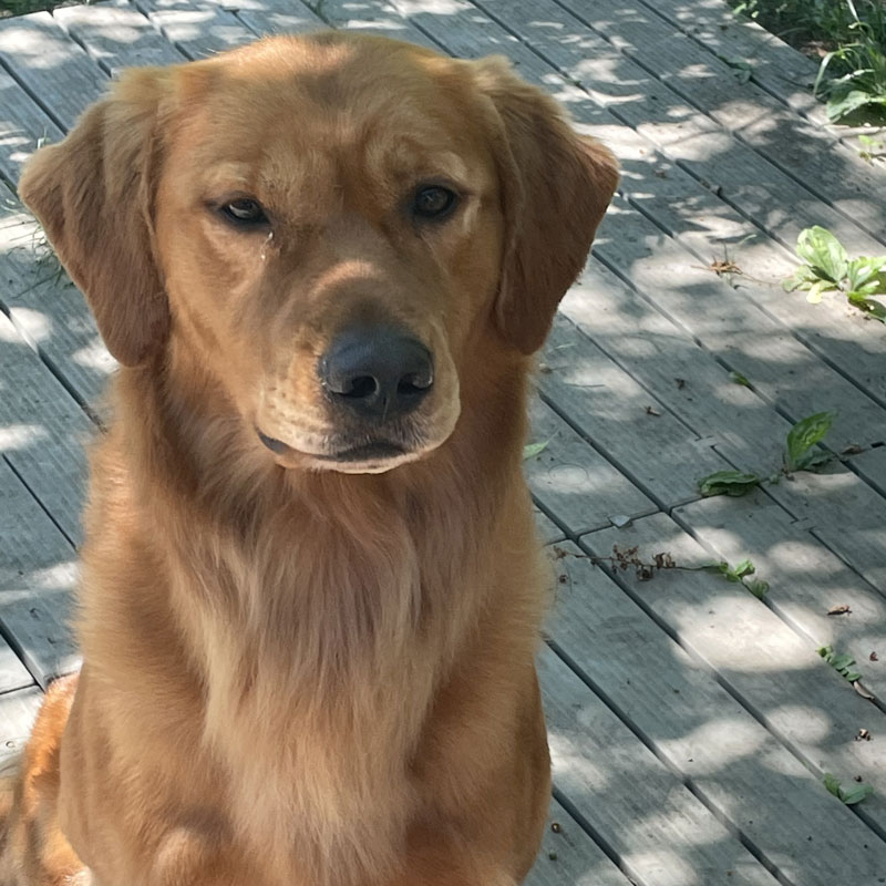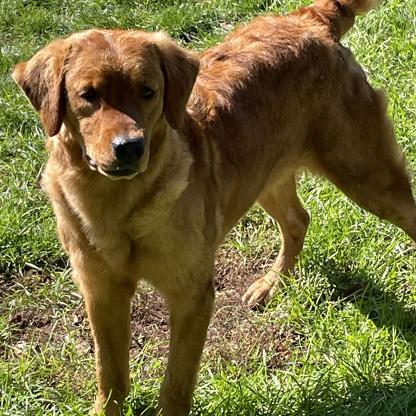 Koko is a beautiful dark red Field Golden. She is a very calm girl with an excellent lime of dogs behind her. She was bred to perform and retrieve – and it shows! She is always bringing everything back! She has a very outgoing stable temperament. She is bred for her brain capacity and is highly intelligent, will work and retrieve but also lay by your feet or next too you on the couch to cuddle, with an excellent off switch! She is beautifully built with a nice big square head for a female. She is 35lbs so nice and petite in size. a fun, loving, and calm temperament.